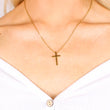 Our Dainty Gold Cross Necklace is the perfect religious accessory. Perfect for everyday wear; pair it with your favorite outfit! Layer with other necklaces, or it by itself for a chic look. All necklaces come beautifully packaged in a light pink box which is perfect for gift giving. Featuring a durable clasp to keep your gold necklace secure.
